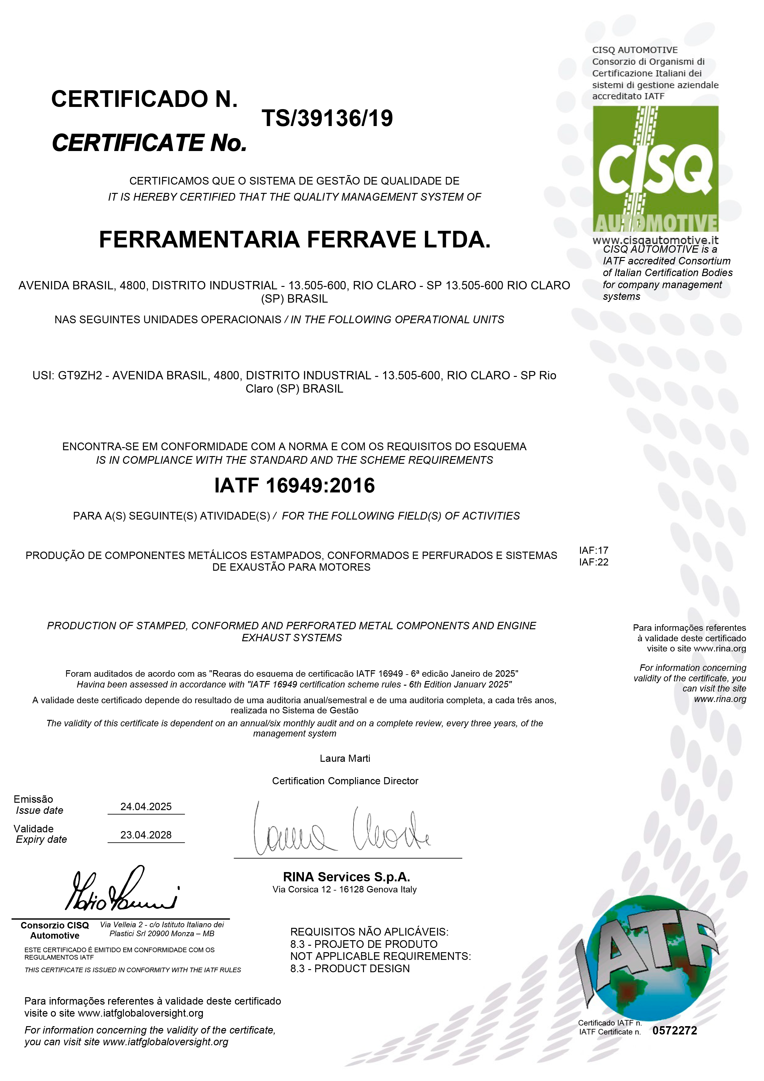 Certificado IATF 16949:2016